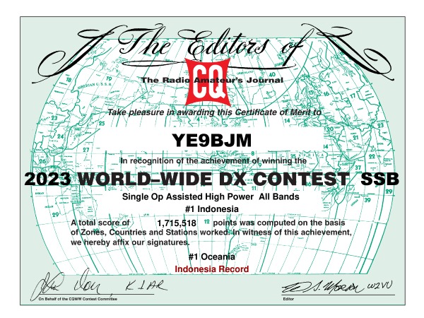 Extra, YE9BJM, score 1.715.518 sponsor YB0KS