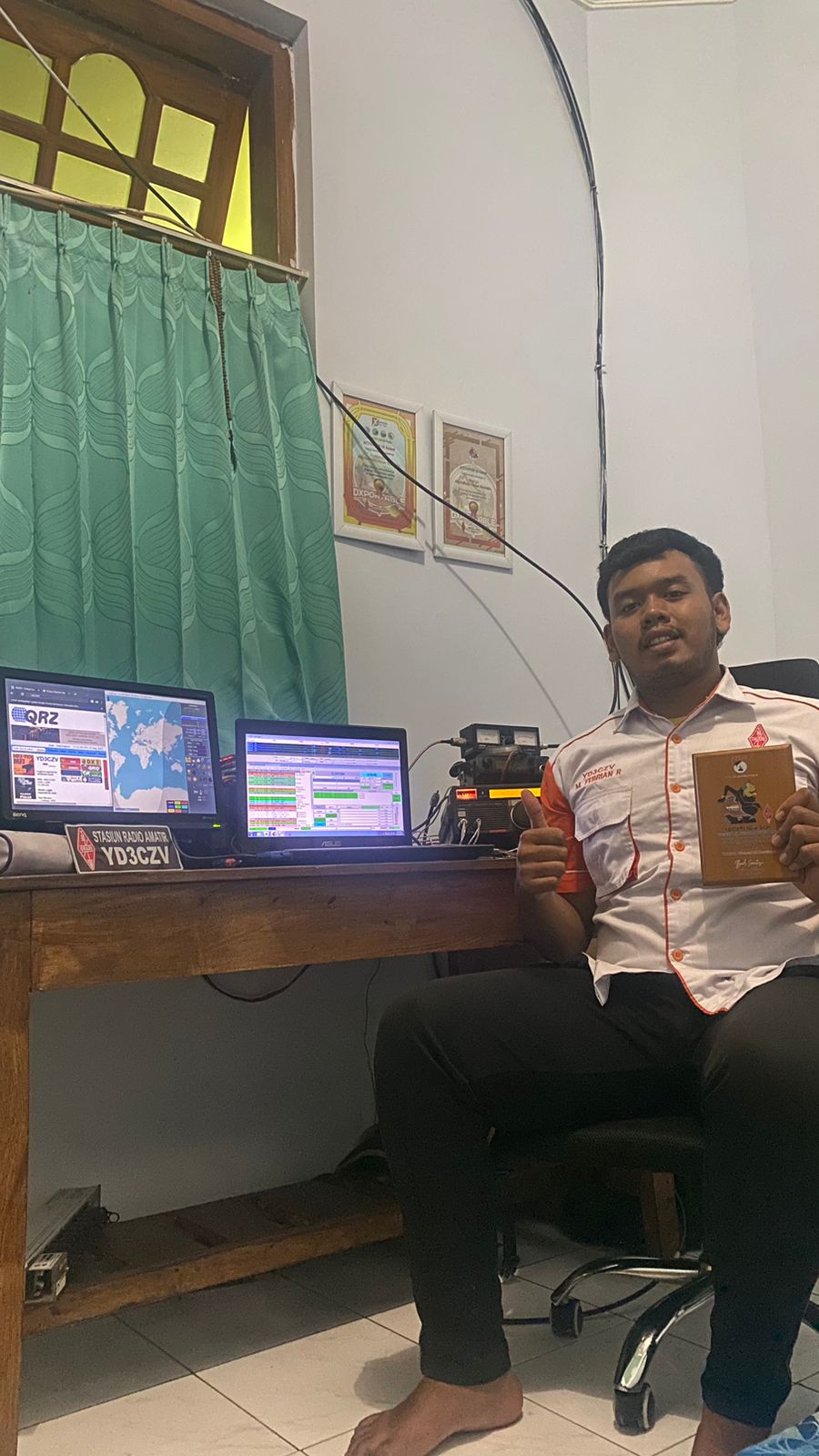 Assalamualaikum Wr. Wb. Terima kasih saya ucapkan kepada Mr. Budi Santoso YE1AR President YBDXPI dan Tim atas bimbingan dan arahannya, tidak lupa saya ucapkan juga terimakasih kepada YD1CAS sebagai sponsor dan alhamdulillah plakat 100 Entity Mixed Mode sudah sampai dengan selamat. Salam dari saya Aldo de YD3CZV